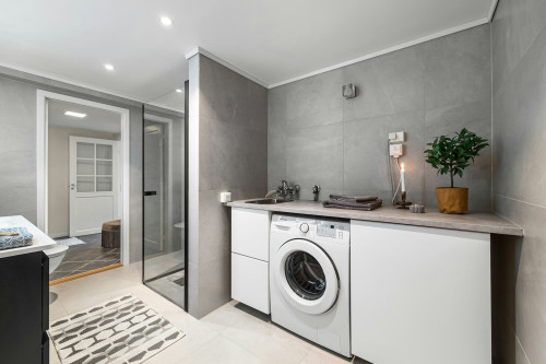 - Kombinerer vask og tørring i én maskine